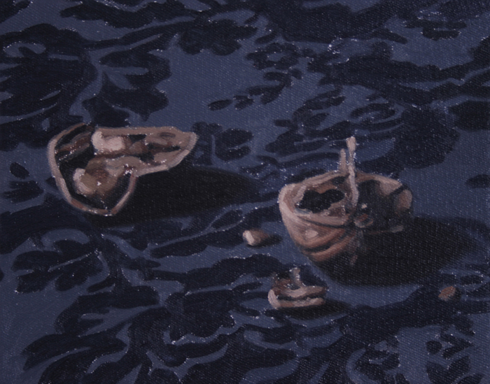 Nuez rota - 2012. Óleo sobre lienzo. 19 x 22 cm.